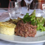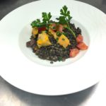 Tartare de magret de canard aux amandes et crème de pruneaux