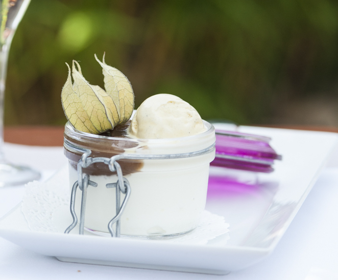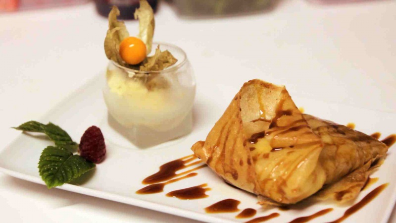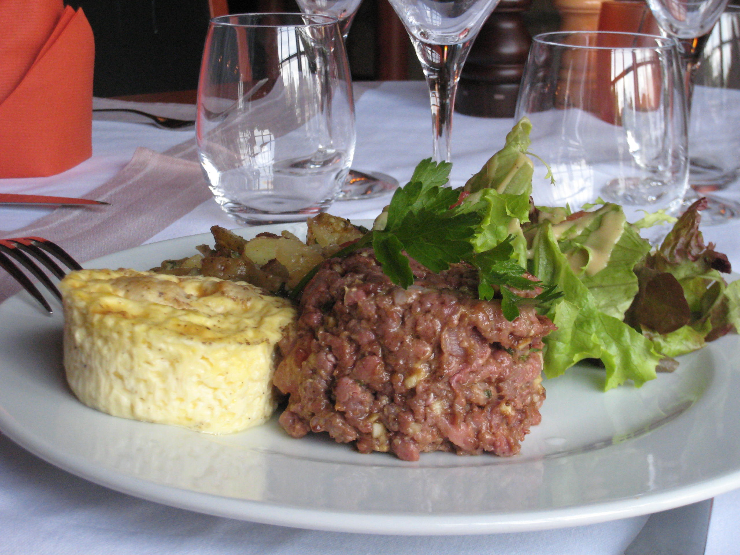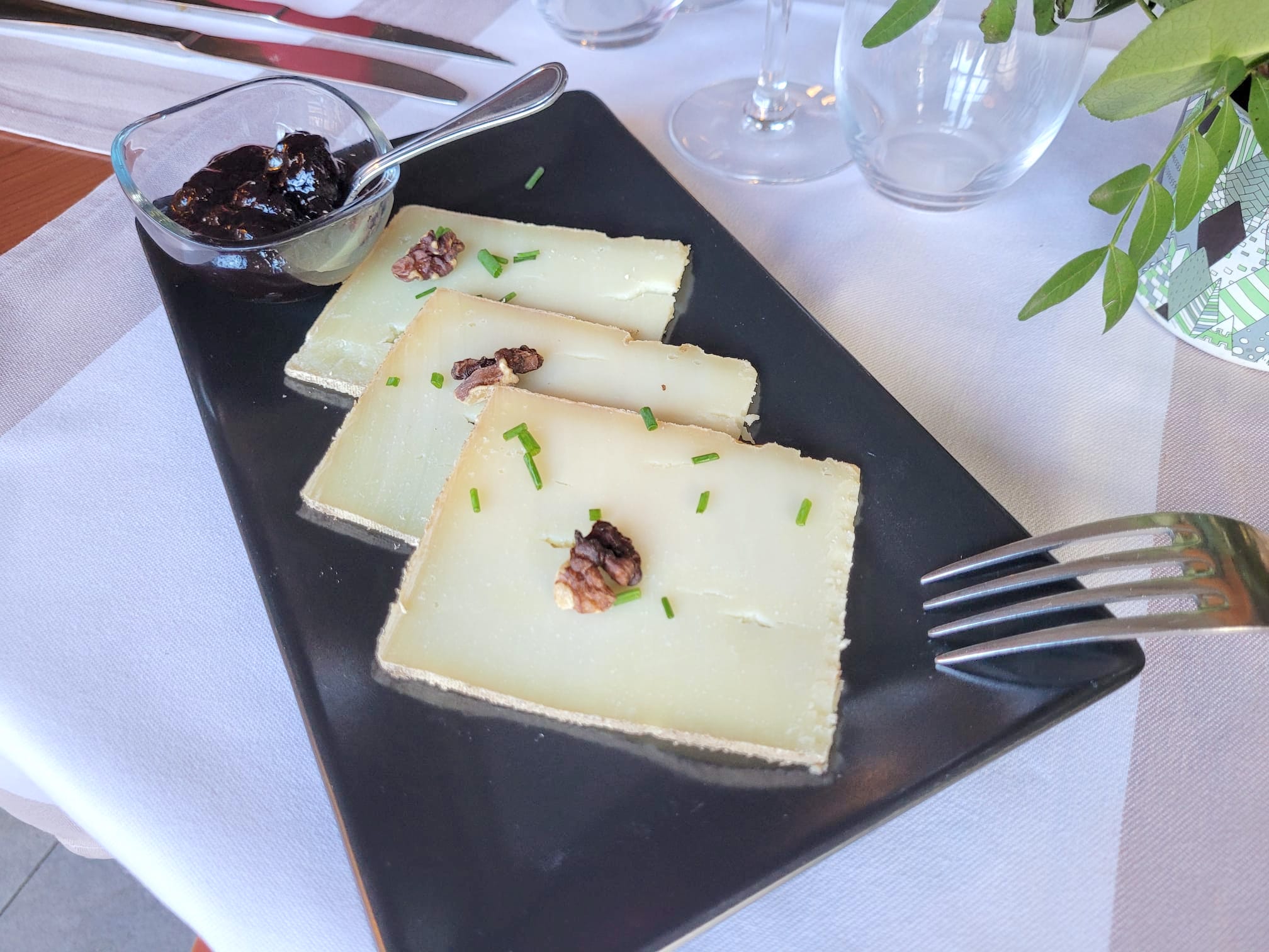 Tartare de magret de canard aux amandes et crème de pruneaux