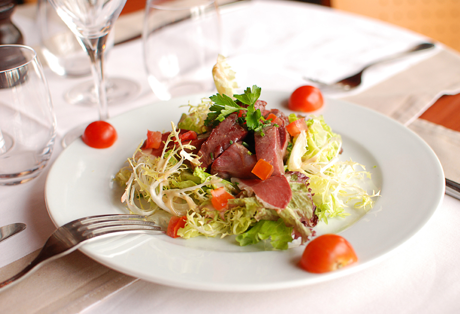 Salade Chalosse aux gésiers d’oie et magrets fumés