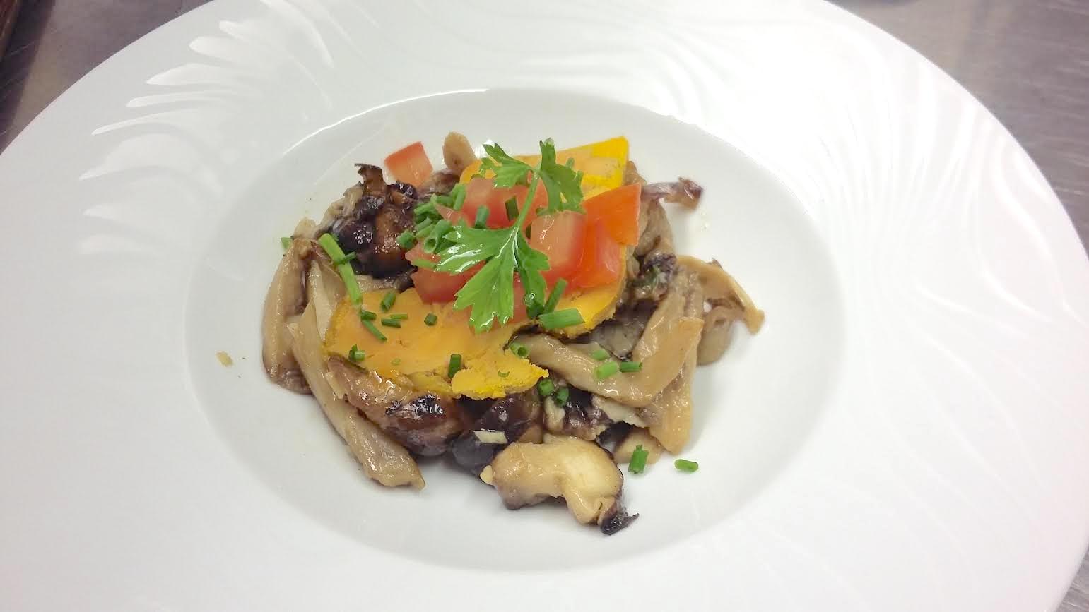 Poêlée de chita ké et pleurotes, copeaux de foie gras